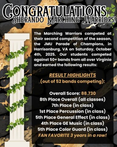 - 1st Place Percussion, 4th Place GE Music, 5th Place GE & Color Guard