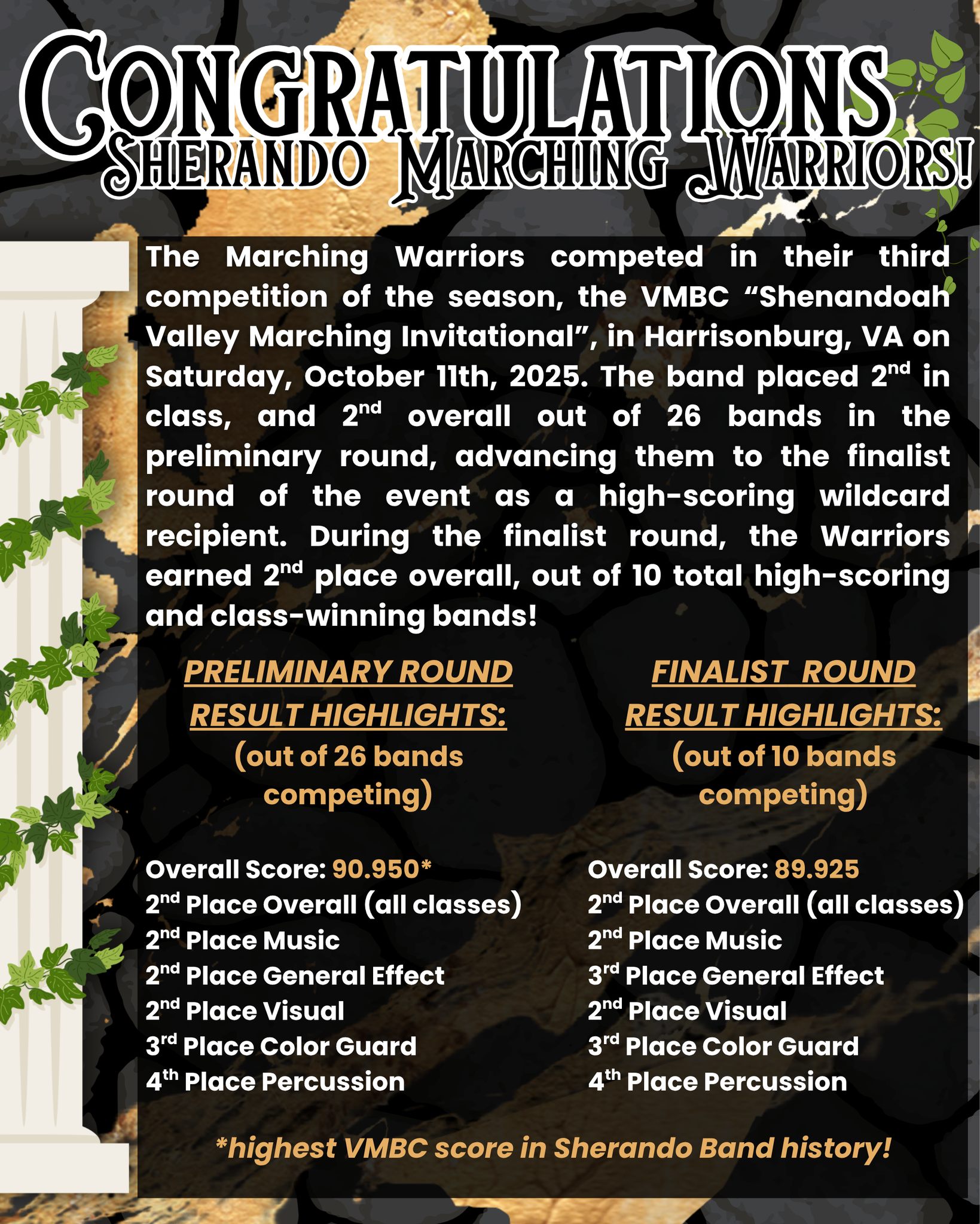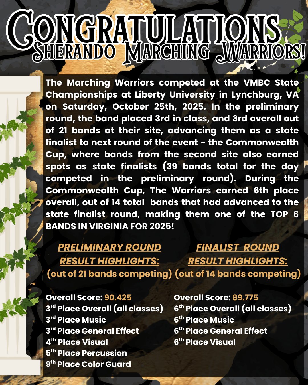 - 3rd Place Overall out of 21 bands competing at the Liberty University site